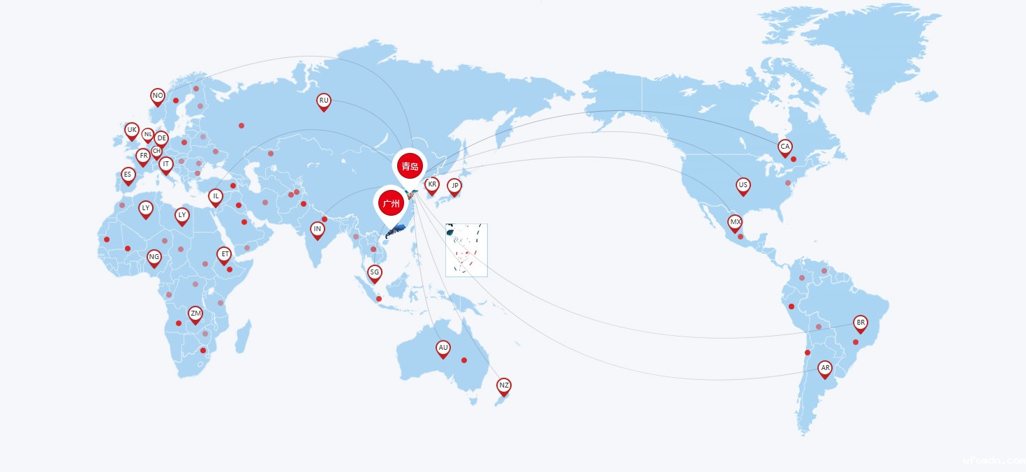 个产品销往全球国家和地区